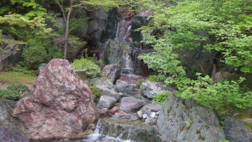 医師であり造園家でもある山名征三氏が現代版大名庭園を目指して、25年の歳月を掛けて作り上げたのがこちらの仙石庭園です。広さが40,000㎡(甲子園球場の1.1倍)の広大な空間には変化に富んだ表情の庭が造られています。各地の様々な銘石がよく手入れされている庭木をバックに鎮座し、庭園の種類も、枯山水から、大滝から水が流れ落ちる庭園、池を中心とした池泉庭園など見学ルートには多種多様な庭が控え、見飽きることが有りません。この庭園を山名苑主自らのご案内で巡らせて貰いました。