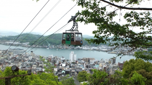 西国寺山を下って市街地に入ると、次には千光寺山に登るためにロープウェイの駅へと向かいます。ロープウェイは標高差130メートルを3分ほどで登り、全く異なる景観が見渡せるところに連れて行ってくれます。