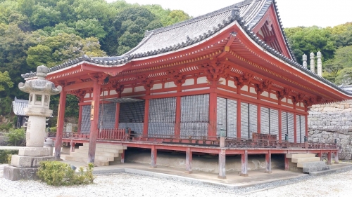 福山城から50分余り西にバスで向かうと尾道です。バスは2号線バイパスをおりて山側の参道から西国寺を目指しました。西国寺は奈良時代に行基菩薩によって開かれたお寺で、かれこれ1300年の歴史を有します。室町期に備後国の守護職となった山名氏は、火災に遭った西国寺復興に手を貸しており、現在に伝わる金堂は、山名氏による再建と言われています。また、山上にそびえる三重塔は足利6代将軍義教公の寄進によるものです。今回は、持仏堂に上げていただいて、参加者全員で般若心経のお勤めを行い、山名先人の証大菩提と一族繁栄をお祈りしました。