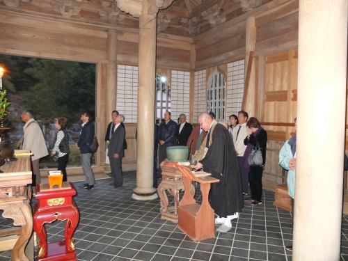 参拝をお願いしておりました開山堂は昔ながらの形式を守るためにも電気の配線はされておりませんので、円通寺到着後はご住職の案内で日没を迎えるまでに、開山堂に上がらせていただき、ロウソクの灯火を頼りに参拝をさせて頂きました。